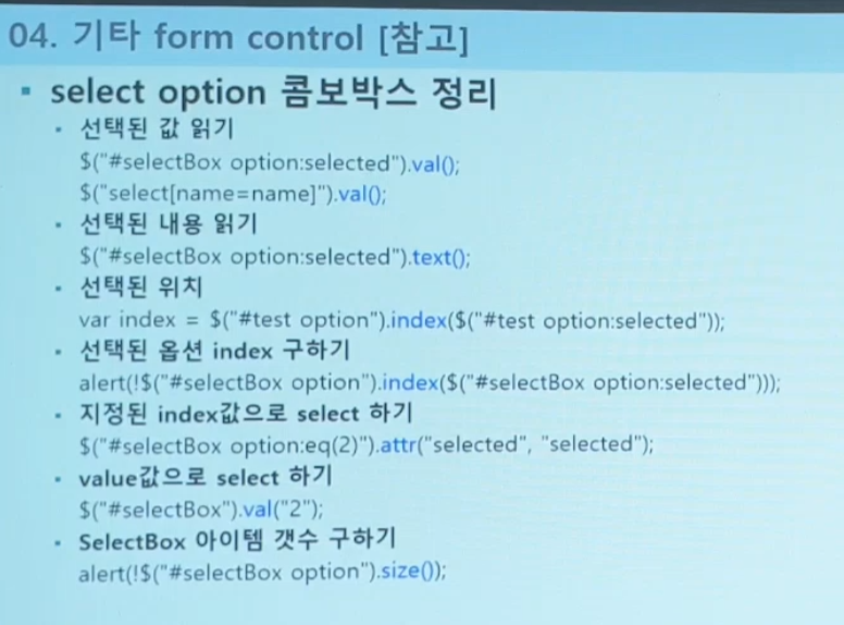 선택 된 값 가져오기 : select
