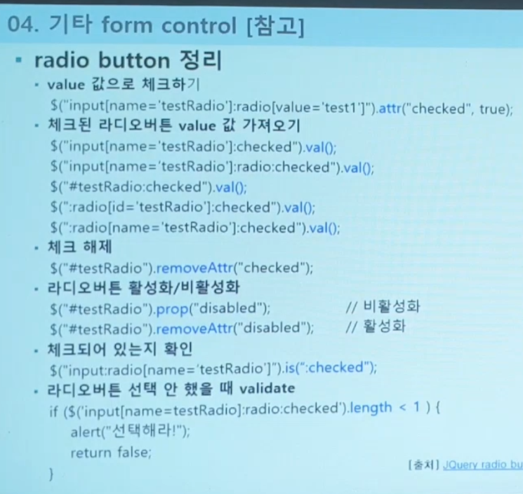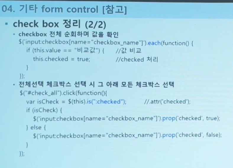 변수를 체크했는가(했으면 true, 아니면 false) : var.is(":checked)"