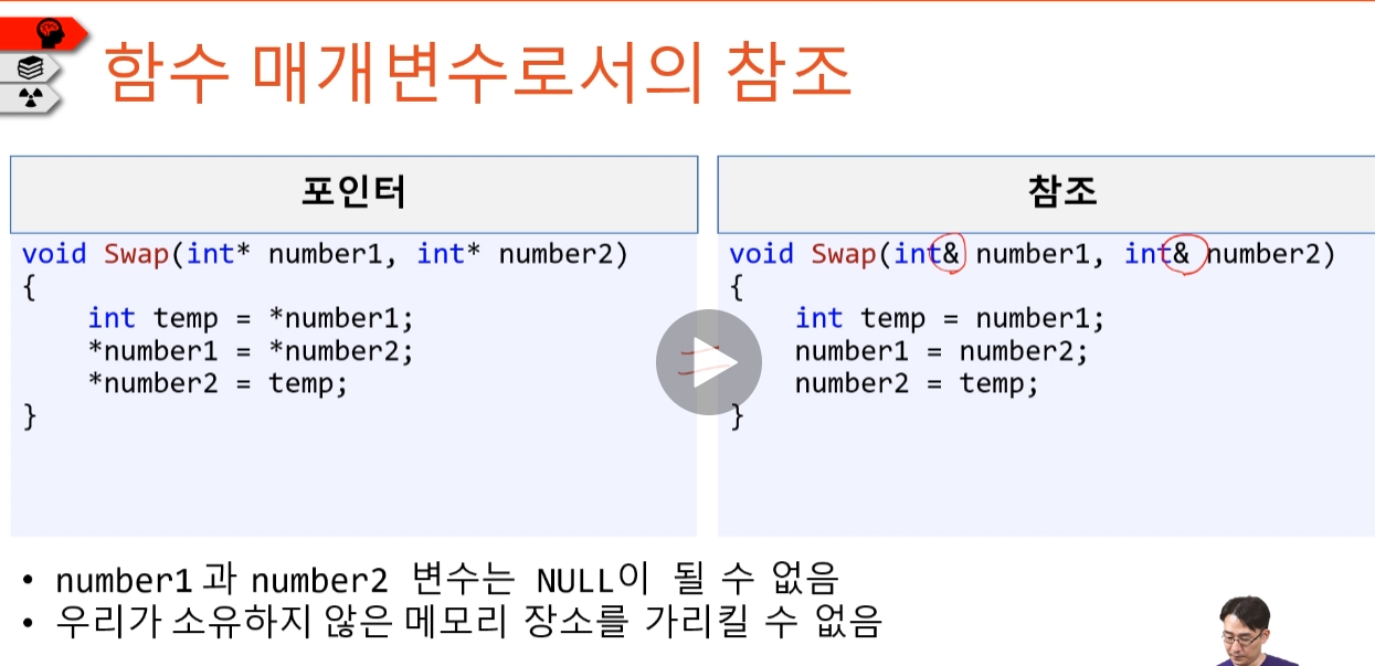 int& 변수 = NULL; //error NULL이 될 수 없다