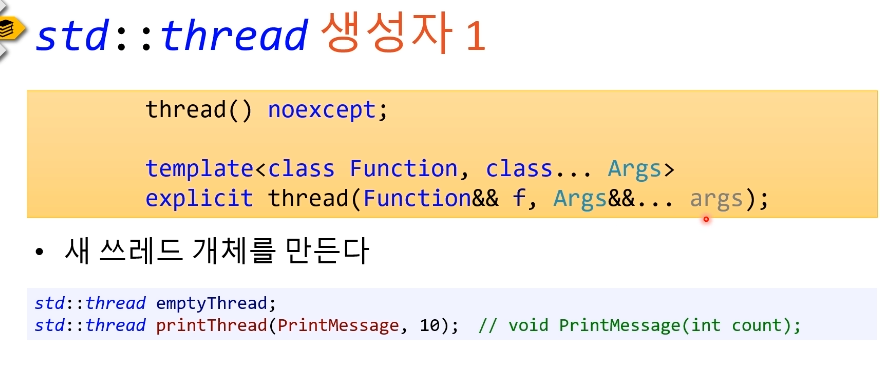 - notify_one(), notify_all() //멈춘 쓰레드 하나 또는 전부를 다시 실행