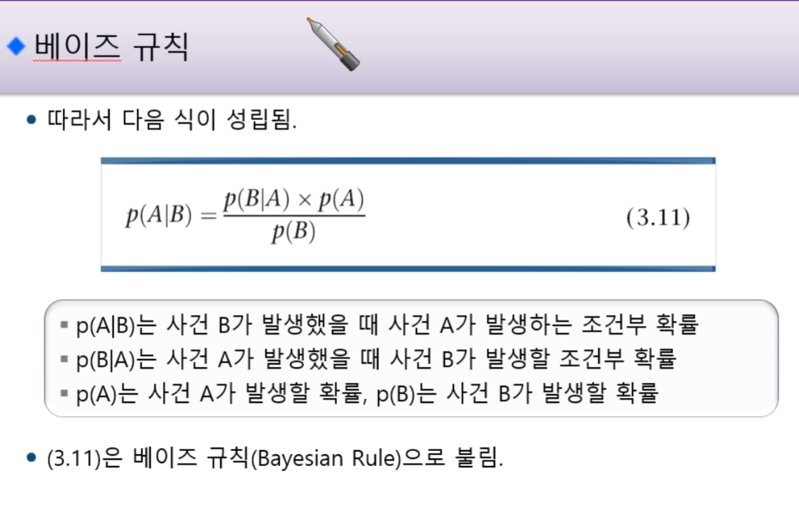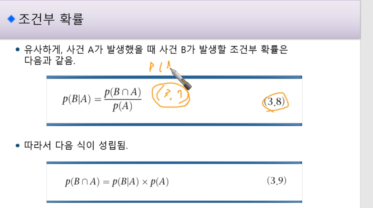 -> p(A|B) -> 사건 B가 발생했을 때 A가 발생할 확률 -> (A와 B가 발생할 확률 / B가 발생할 확률)